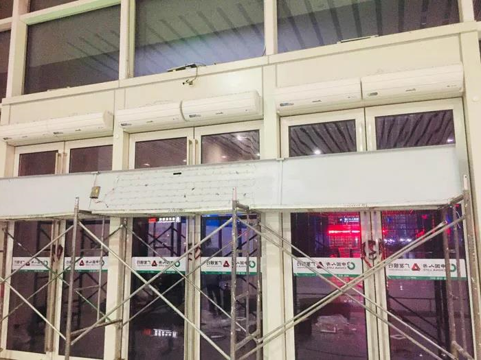 图为长沙南高铁站安装西奥多风幕机的过程实拍。